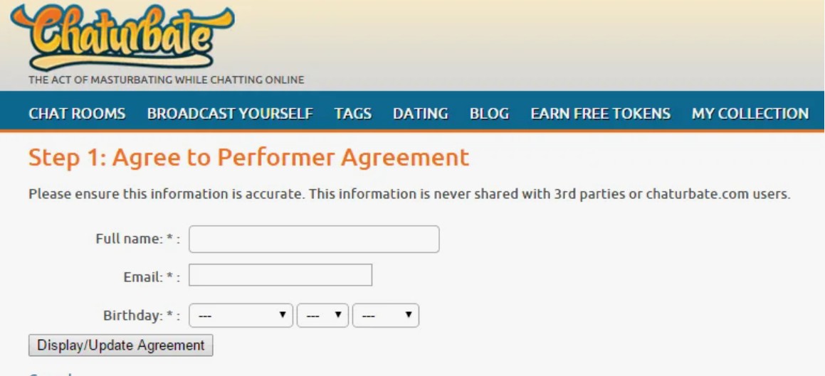 - Agree to Performer Agreement — здесь ты вводишь своё полное имя (латиницей, как в паспорте), дату рождения и email.